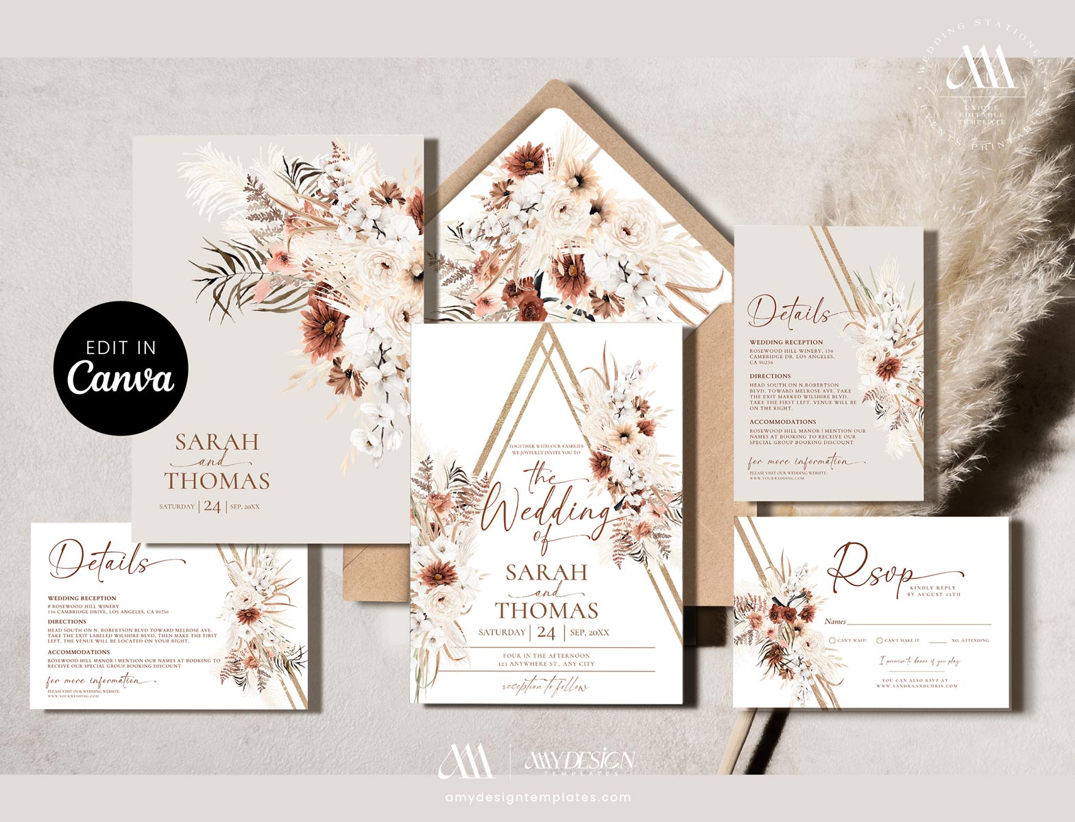 Crafting your wedding invitations is a joyful part of the wedding planning process. Whether you start with a free boho wedding invitation template or explore the premium, customizable options at Amy Design Templates, you have all the tools to design invitations that beautifully announce your bohemian celebration.