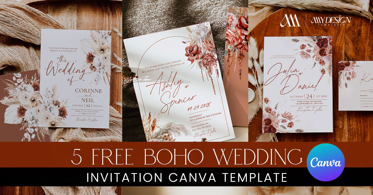 GET YOUR 5 FREE BOHO WEDDING INVITATIONS CANVA TEMPLATE NOW!