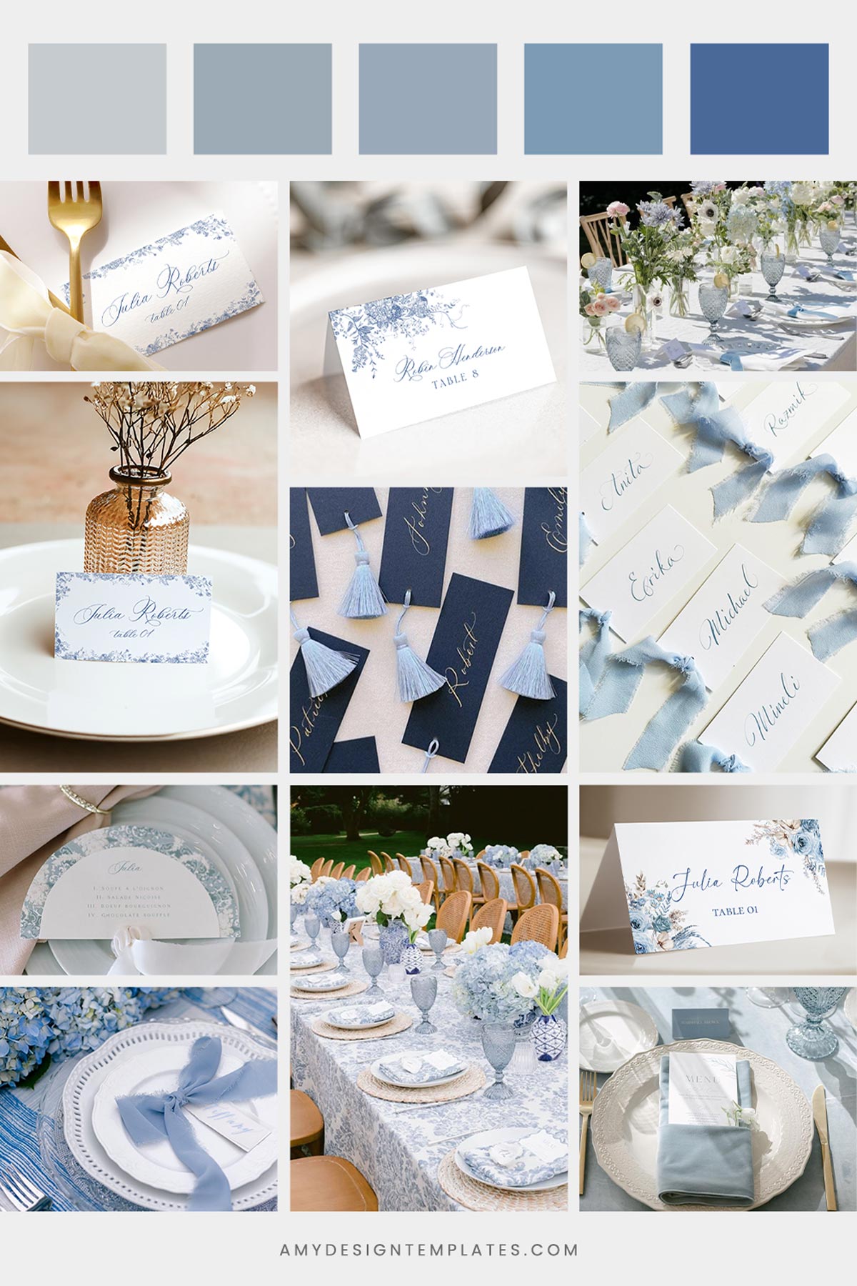 6+ Chic Blue Wedding Place Card Templates: Something Blue at Every Seat
