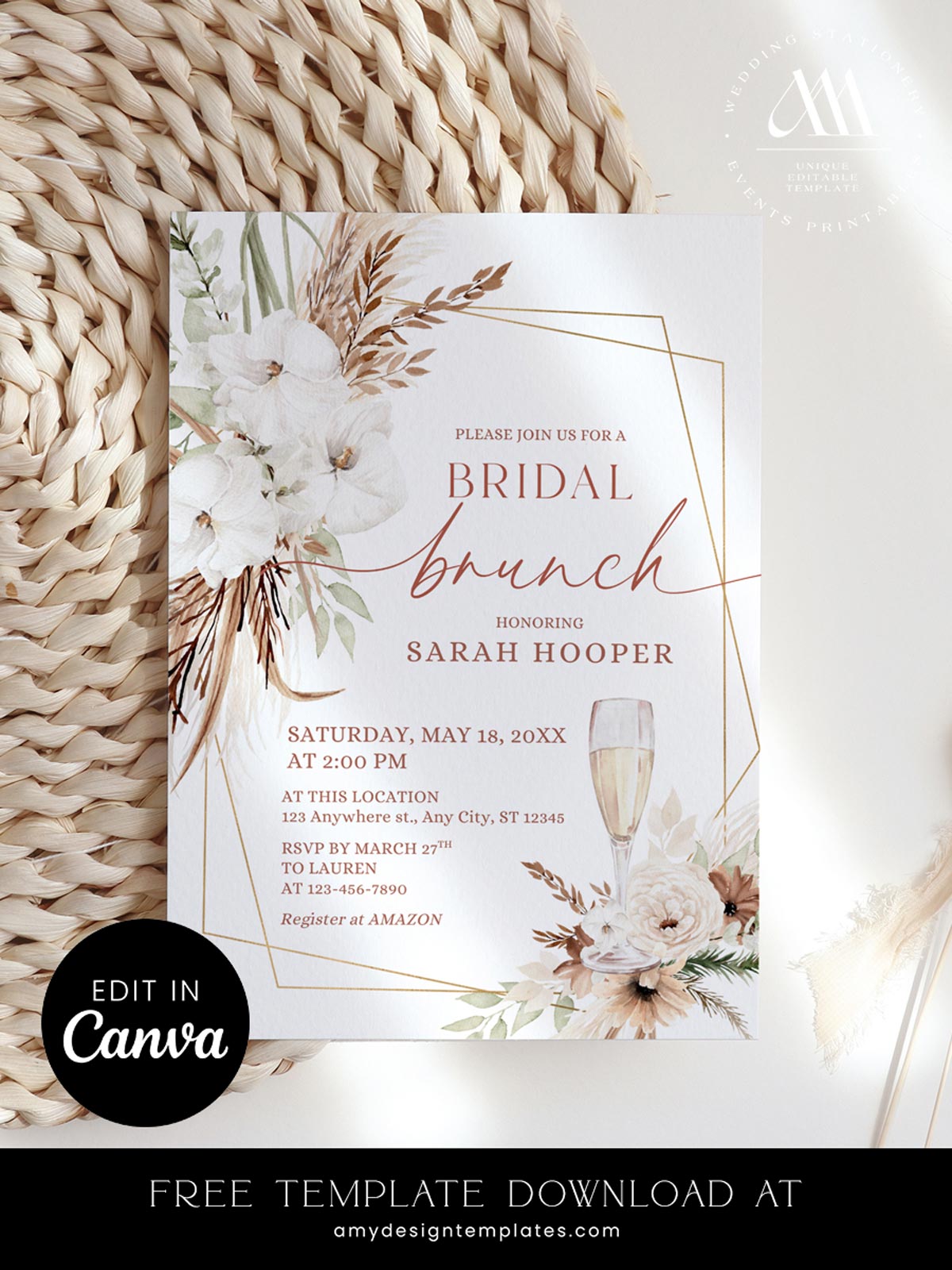 FREECV043 Free Bridal Brunch Invitation Canva Amy Design Templates