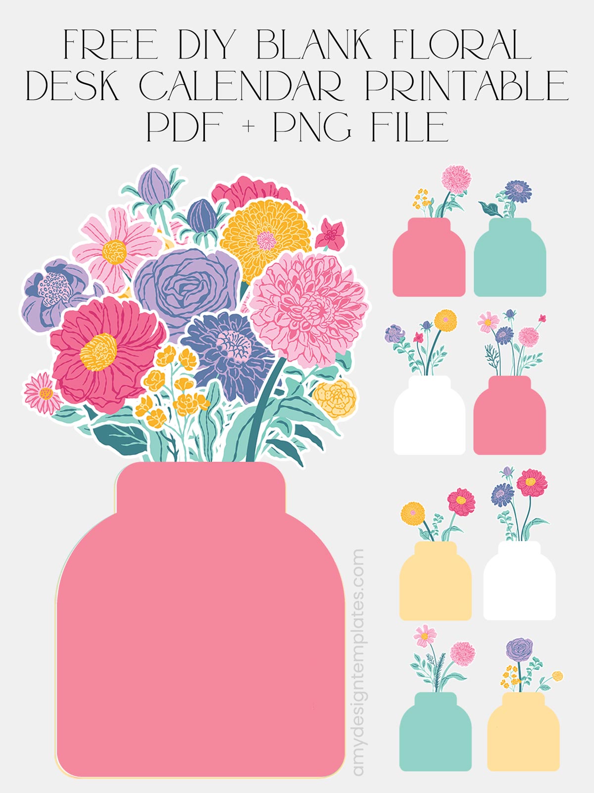 We are sharing a Free Blank Floral Desk Calendar Printable that features charming, hand-drawn floral bouquets in colorful vases. These designs are perfect for creating a custom 12-month calendar or a unique set of floral note cards.