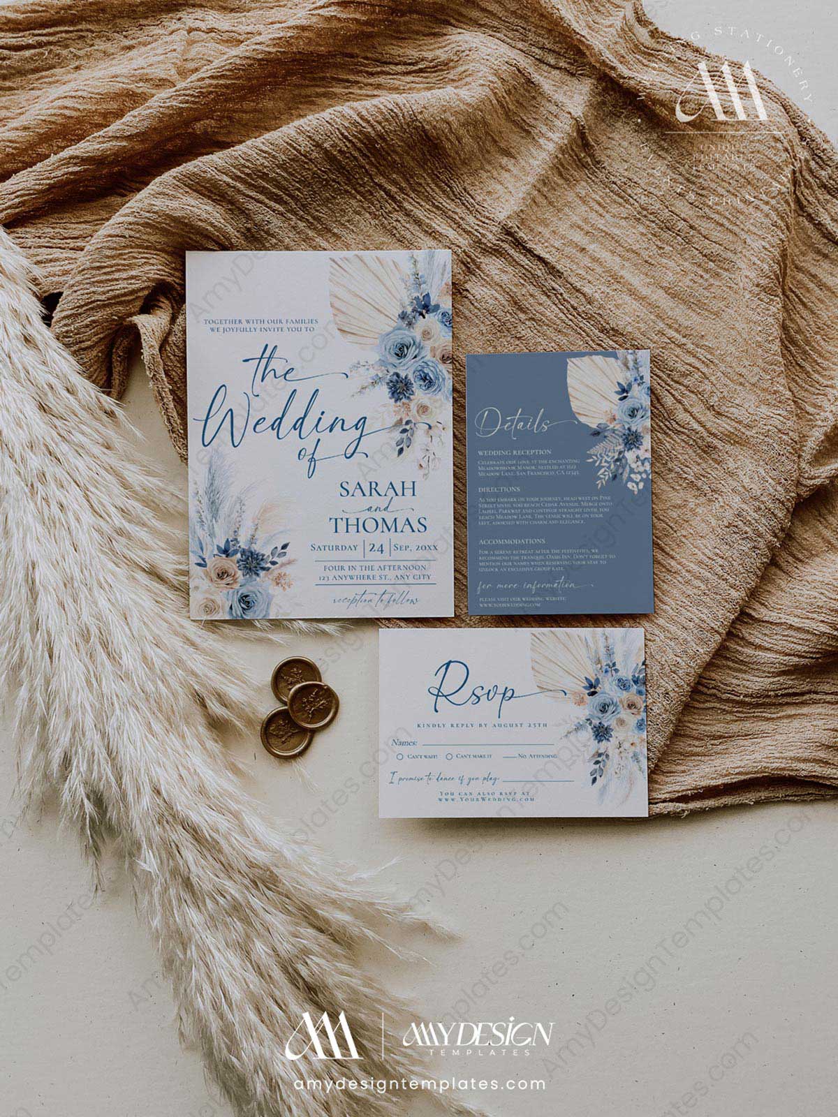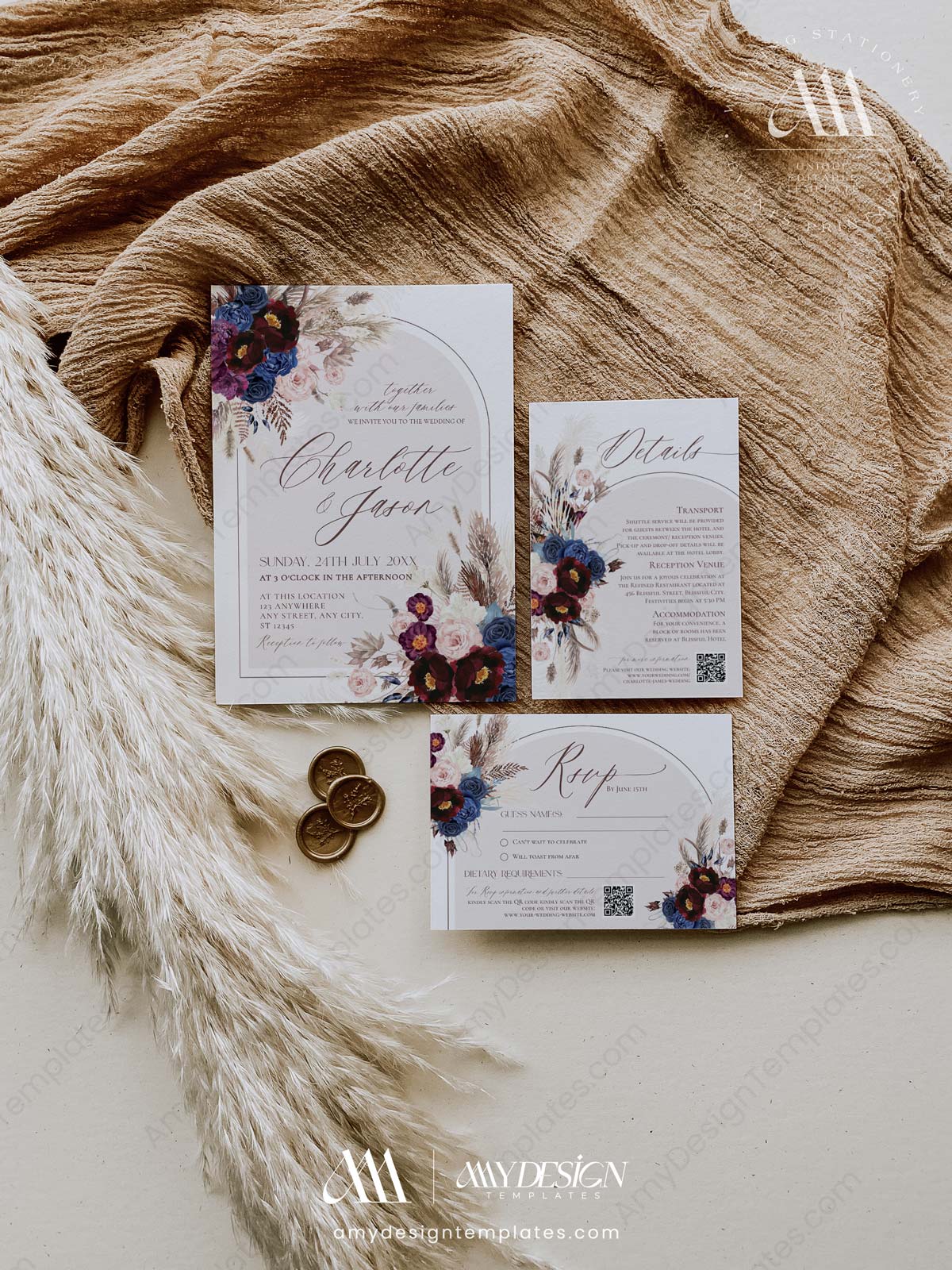 At Amy Design Templates, we offer exquisite collections of boho wedding stationery that combine beautiful design with unparalleled ease of customization and a vast array of matching items.