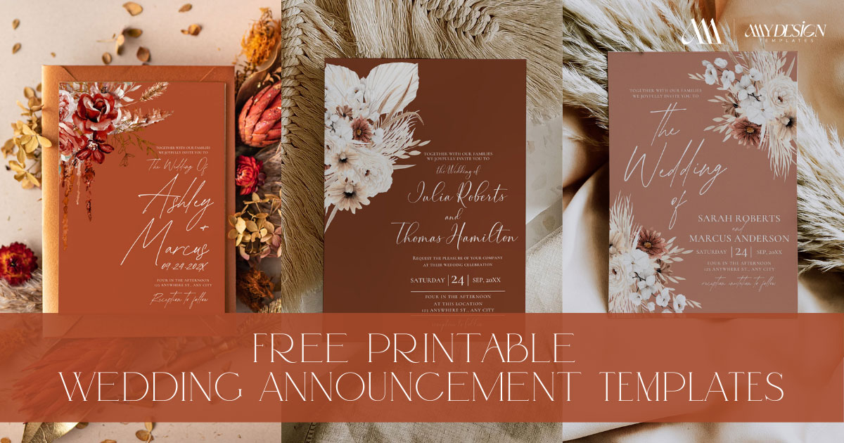 Most free printable wedding announcement and save the date templates are designed in standard card sizes, like 5×7 inches, making them easy to print and mail.