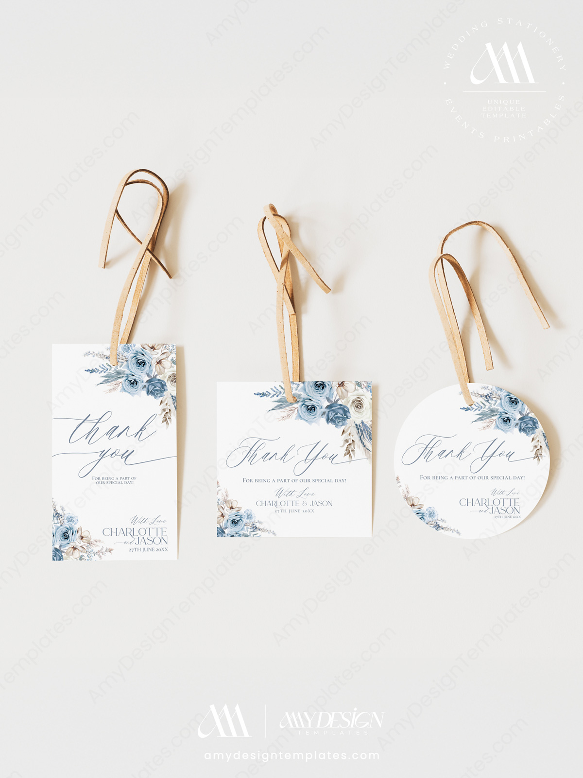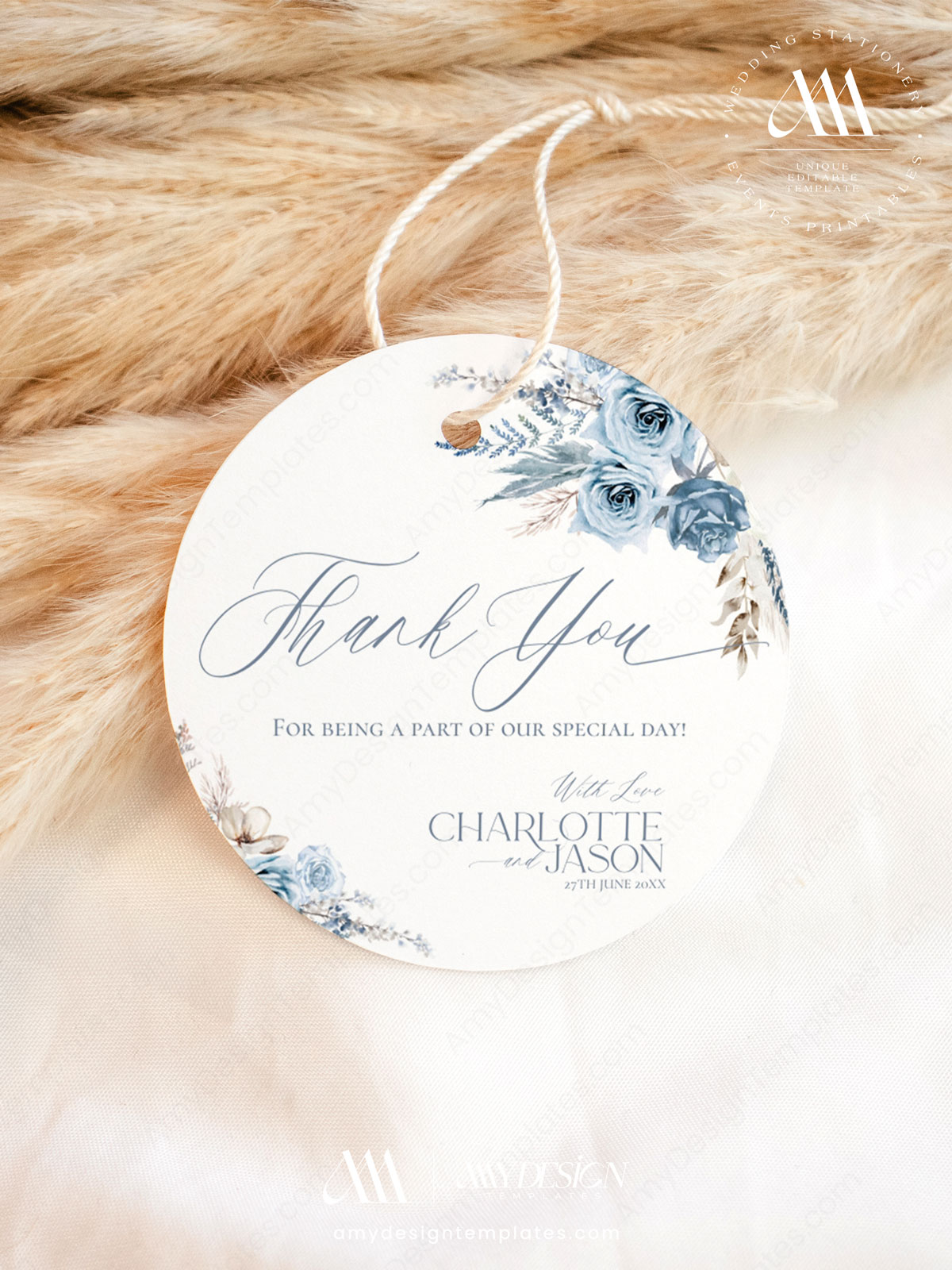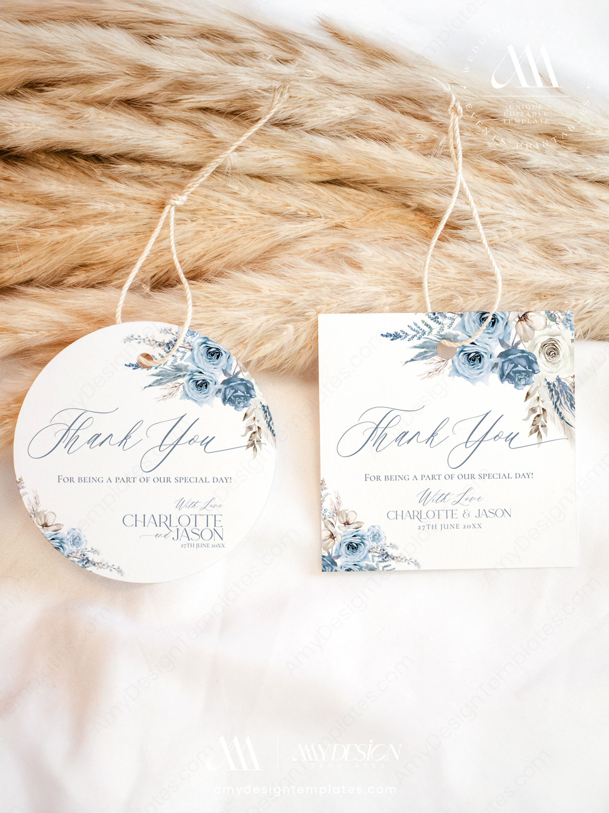 Blue Bohemian Wedding Favor Tags Editable | Thank You Labels Printable Personalized Download