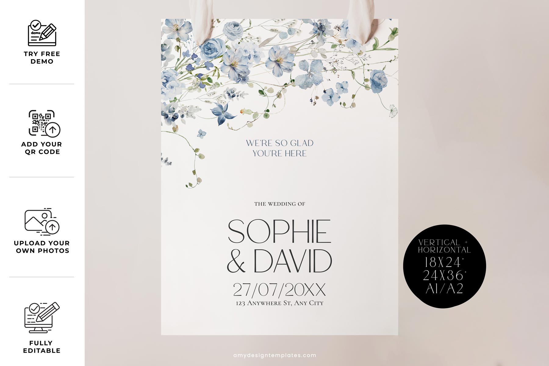 Blue Wildflower Wedding Welcome Sign Template | Welcome To Our Wedding