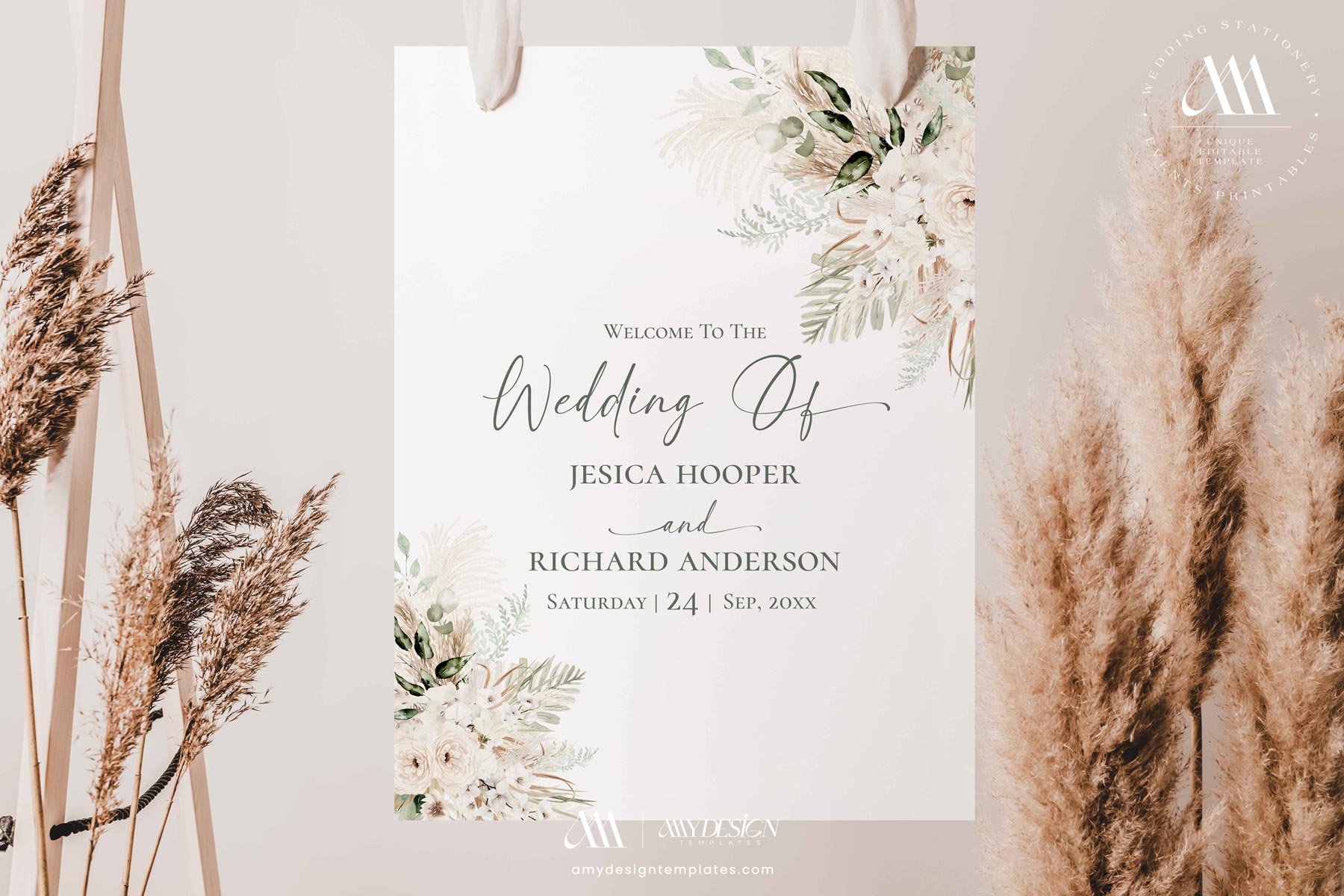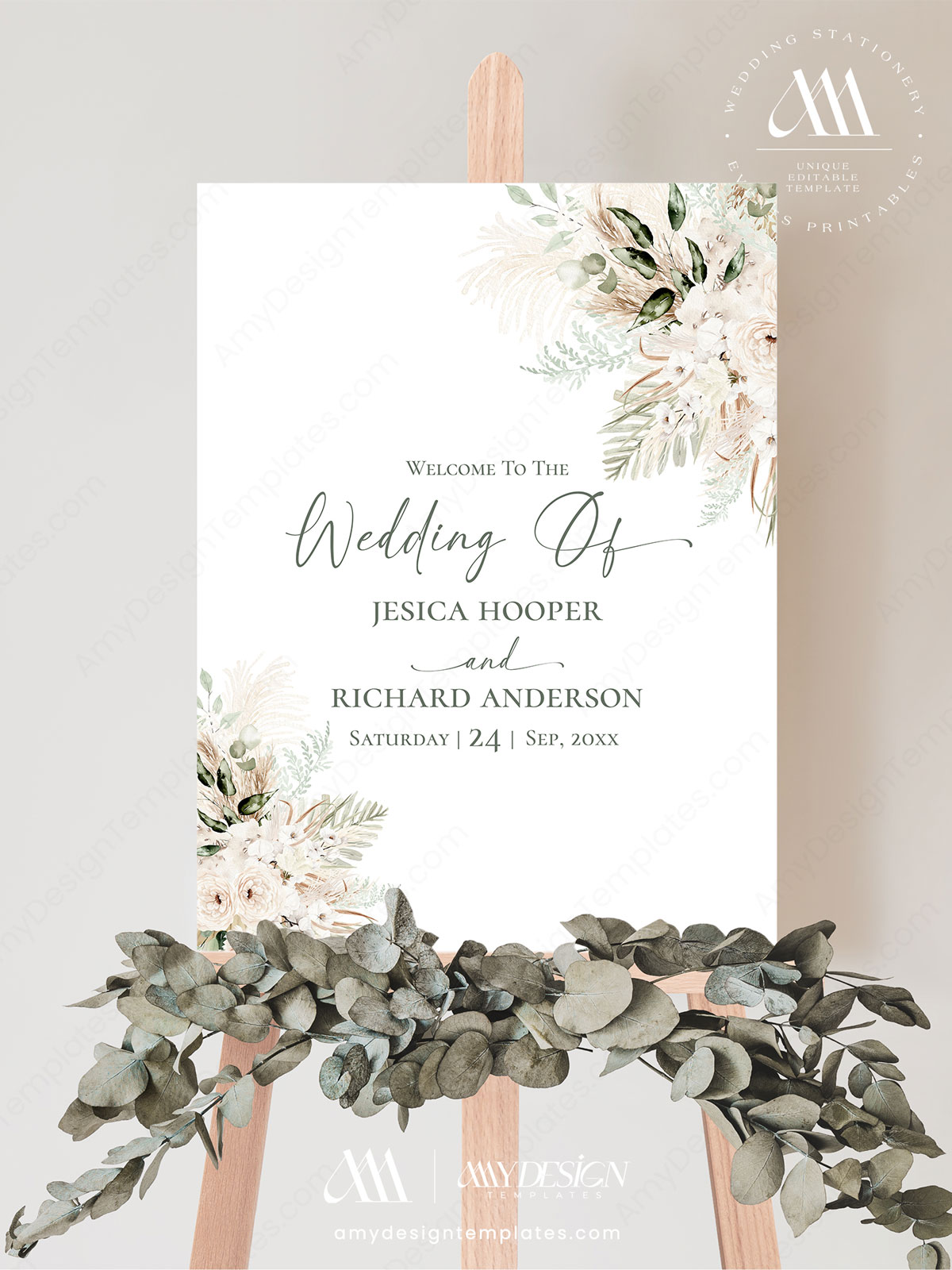 - Welcome sign available in two versions: Vertical and Horizontal