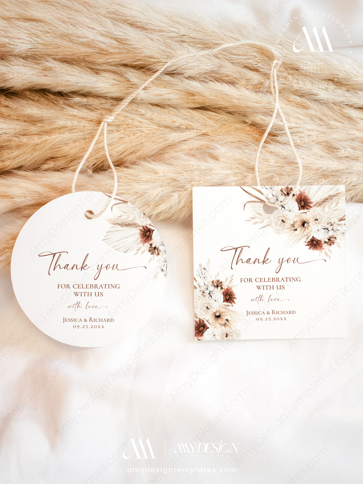 Boho Terracotta Rustic Wedding Tags | Personalized Bridal Baby Shower Thank You Labels Printable