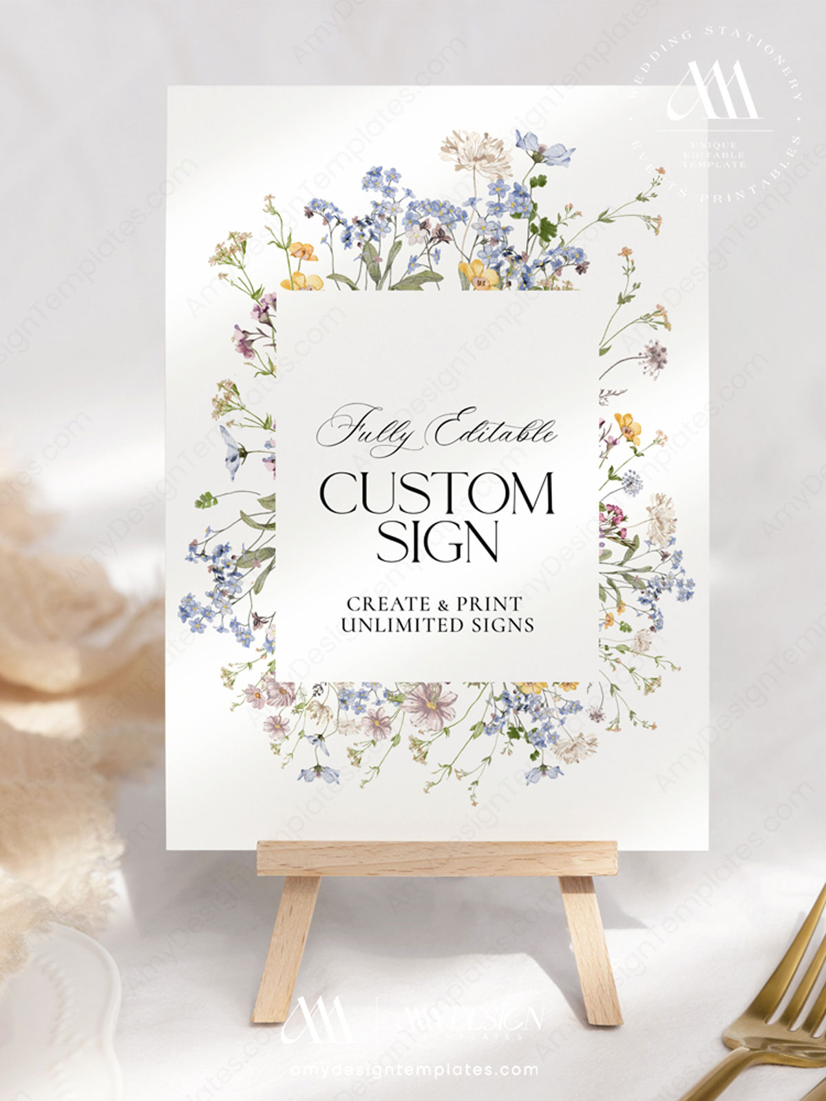 Add a stylish touch to your tables with the Wildflower Wedding Table Signage Template, which is easy to edit and personalize. Free demo available to try before purchasing.
