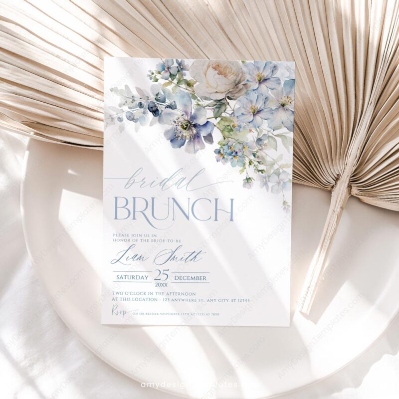Included in this Dusty Blue Floral Bridal Brunch Invitation Template