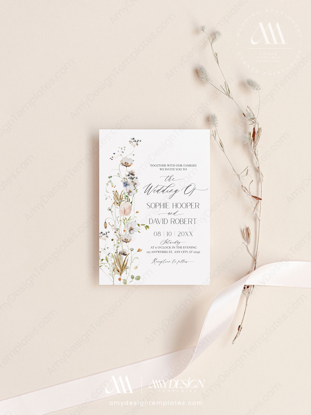 Included in this Elegant Wildflower Wedding Invitation Card