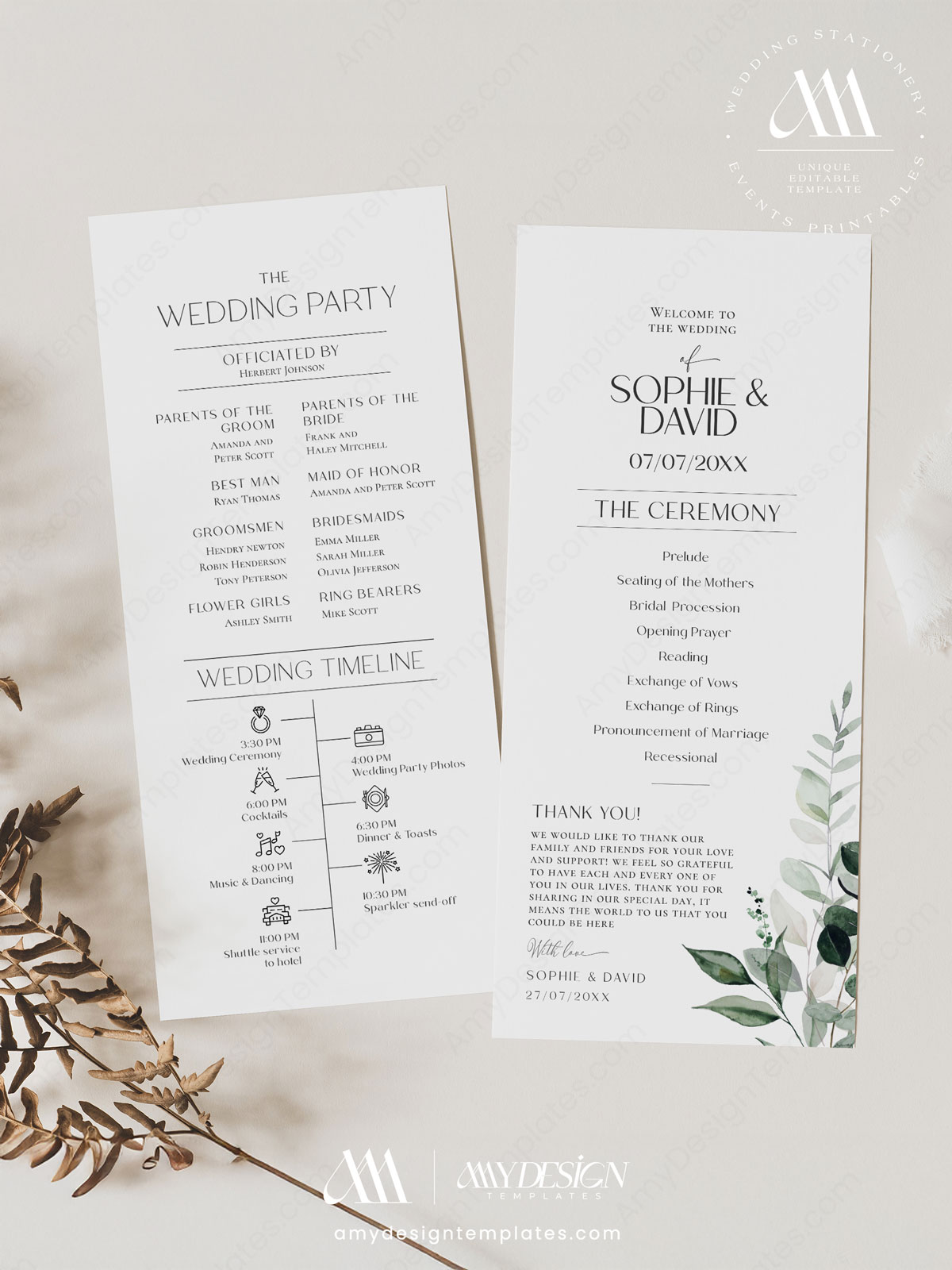 Greenery Eucalyptus Wedding Program Template | Order Of Service Card | Catholic Wedding Program Template