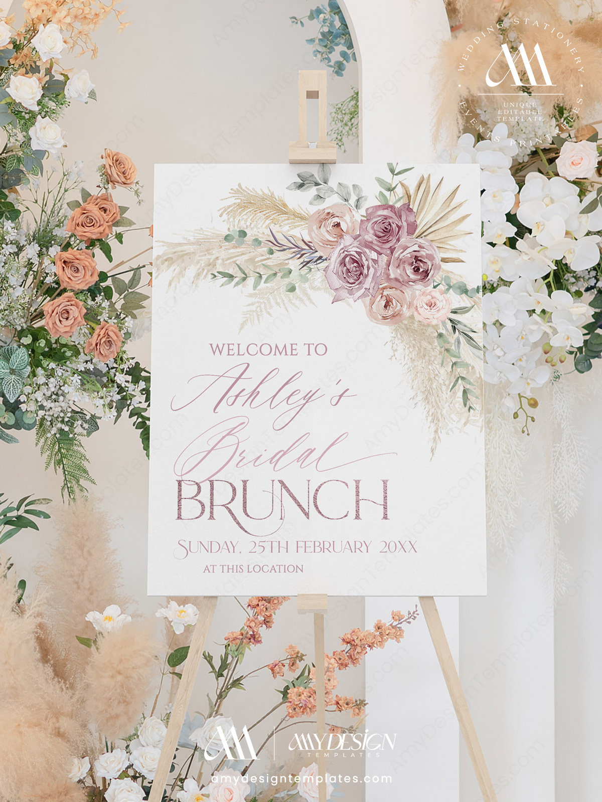 Mauve Blush Pink Floral Bridal Shower Signage Template | Boho Welcome Sign Printable Large Sign