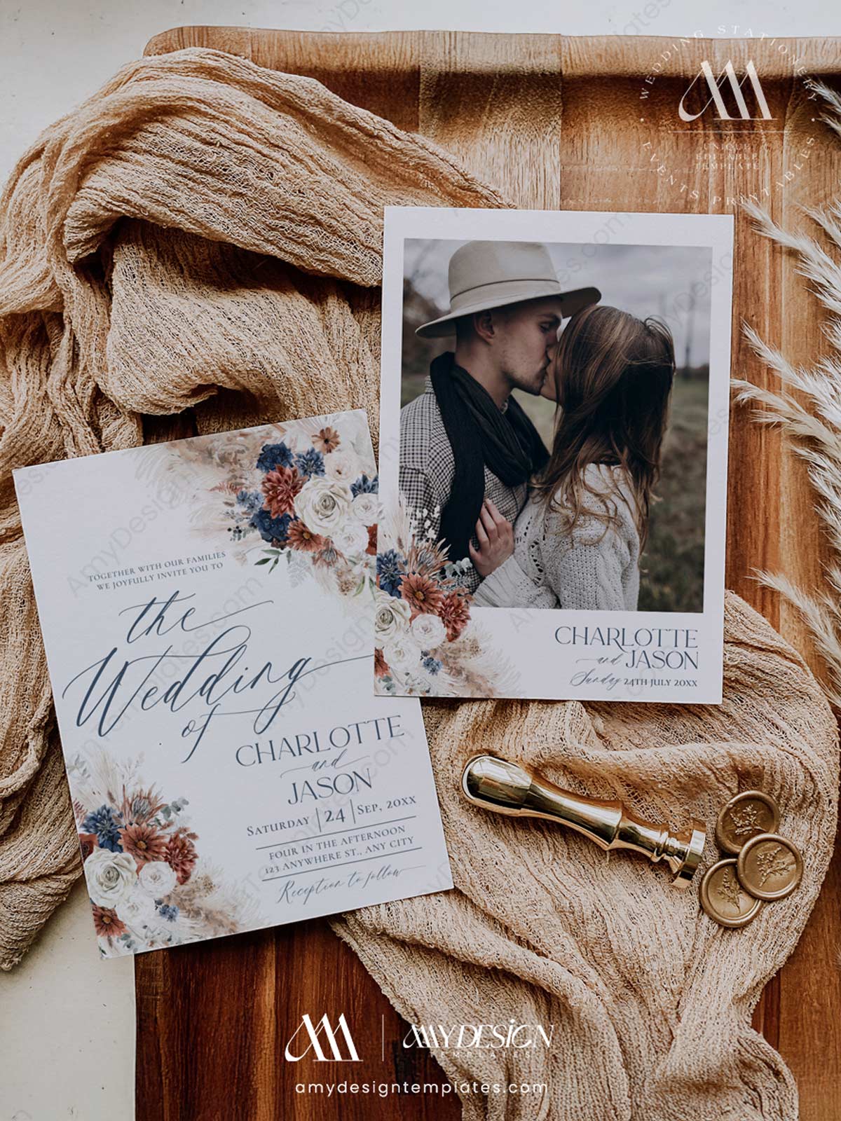 Create a Bold, Moody Atmosphere with the Navy Blue & Rust Wedding Template BUNDLE
