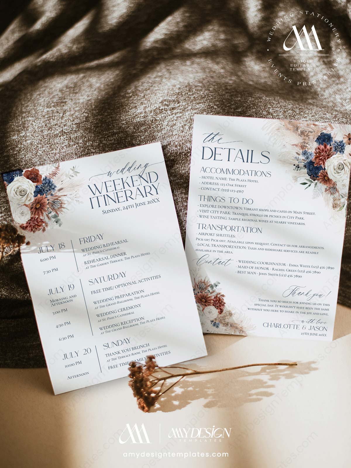 What’s Included in This Navy Blue & Rust Wedding Template BUNDLE