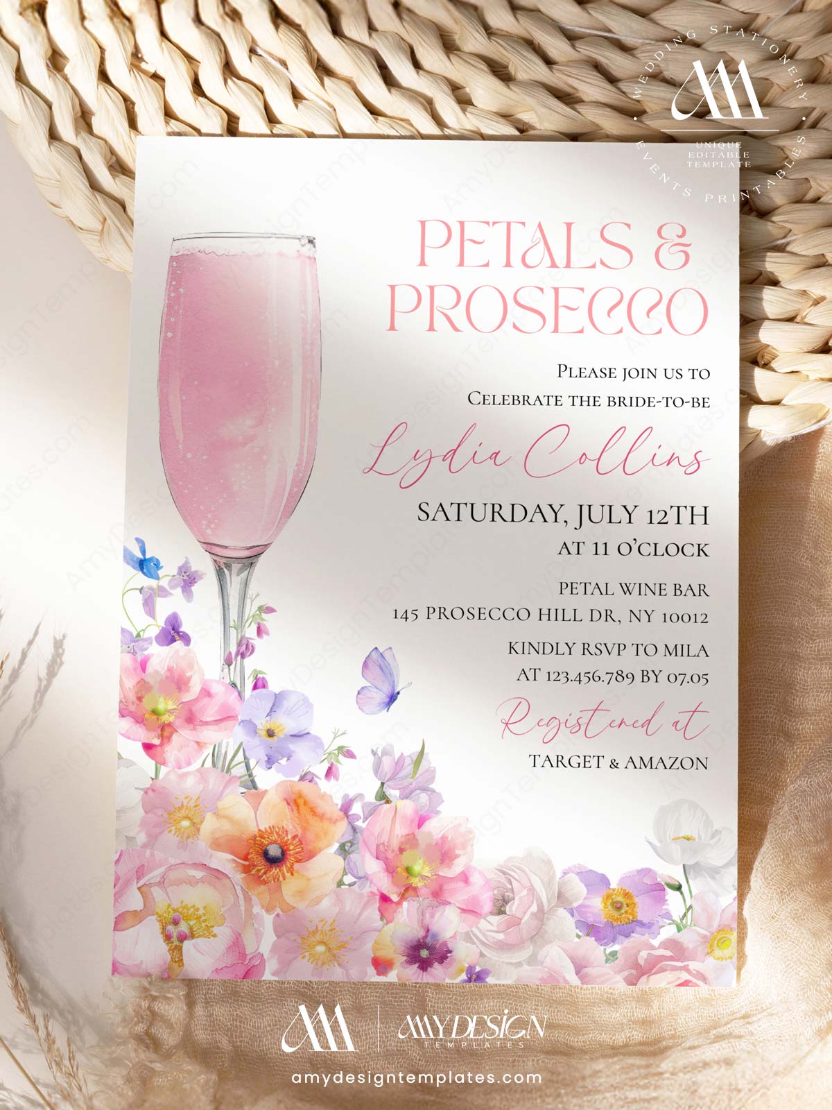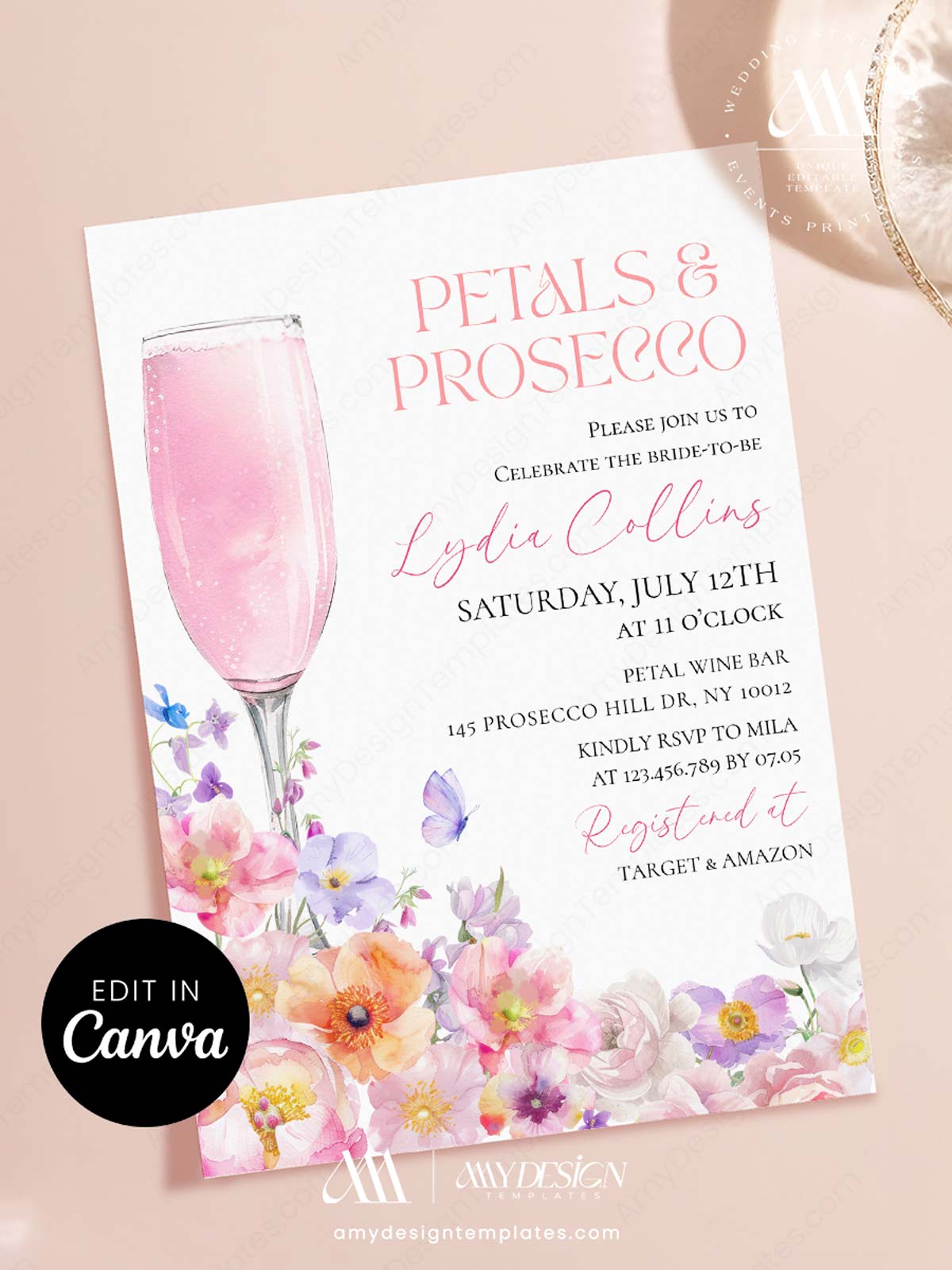 Create a refined first impression with this Peach Pink Floral Petals Prosecco Bridal Shower Invitation Template, thoughtfully designed to capture elegance plus joyful celebration in every detail. A lush watercolor floral palette paired with a chic champagne glass illustration brings a fresh, romantic atmosphere that feels perfect for spring garden parties, bridal brunch gatherings, or vibrant daytime celebrations. The clean typography plus balanced layout offer a polished look that feels both sophisticated plus welcoming. Fully editable in Canva, you can personalize the bride’s name, event date, time, plus location to match your vision. Once customized, simply download your design to print or share digitally with guests for a seamless, beautifully styled invitation experience.