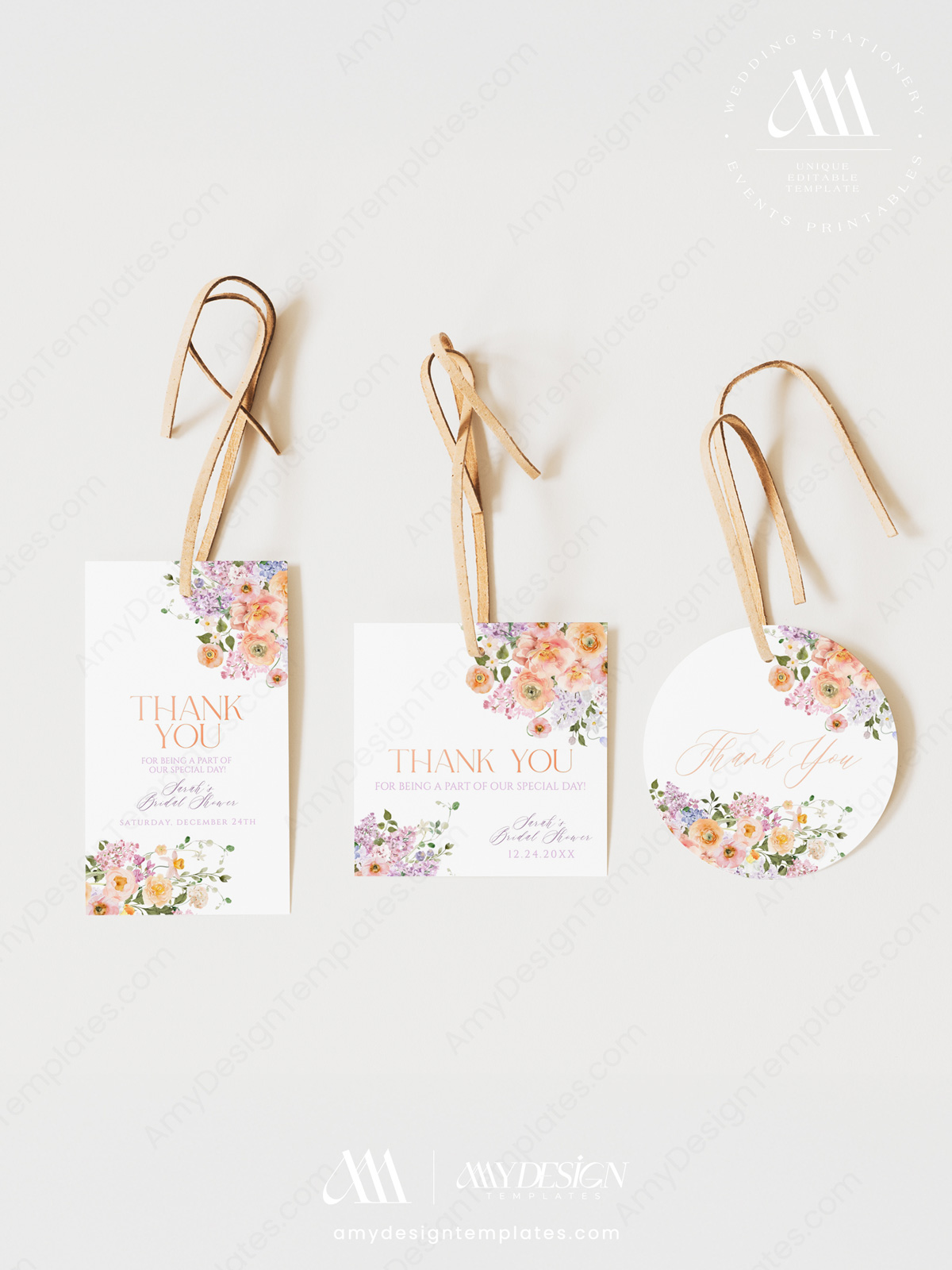 Peach Purple Favor Tags Template Printable | Floral Garden Wedding Bridal Shower Thank You Tags
