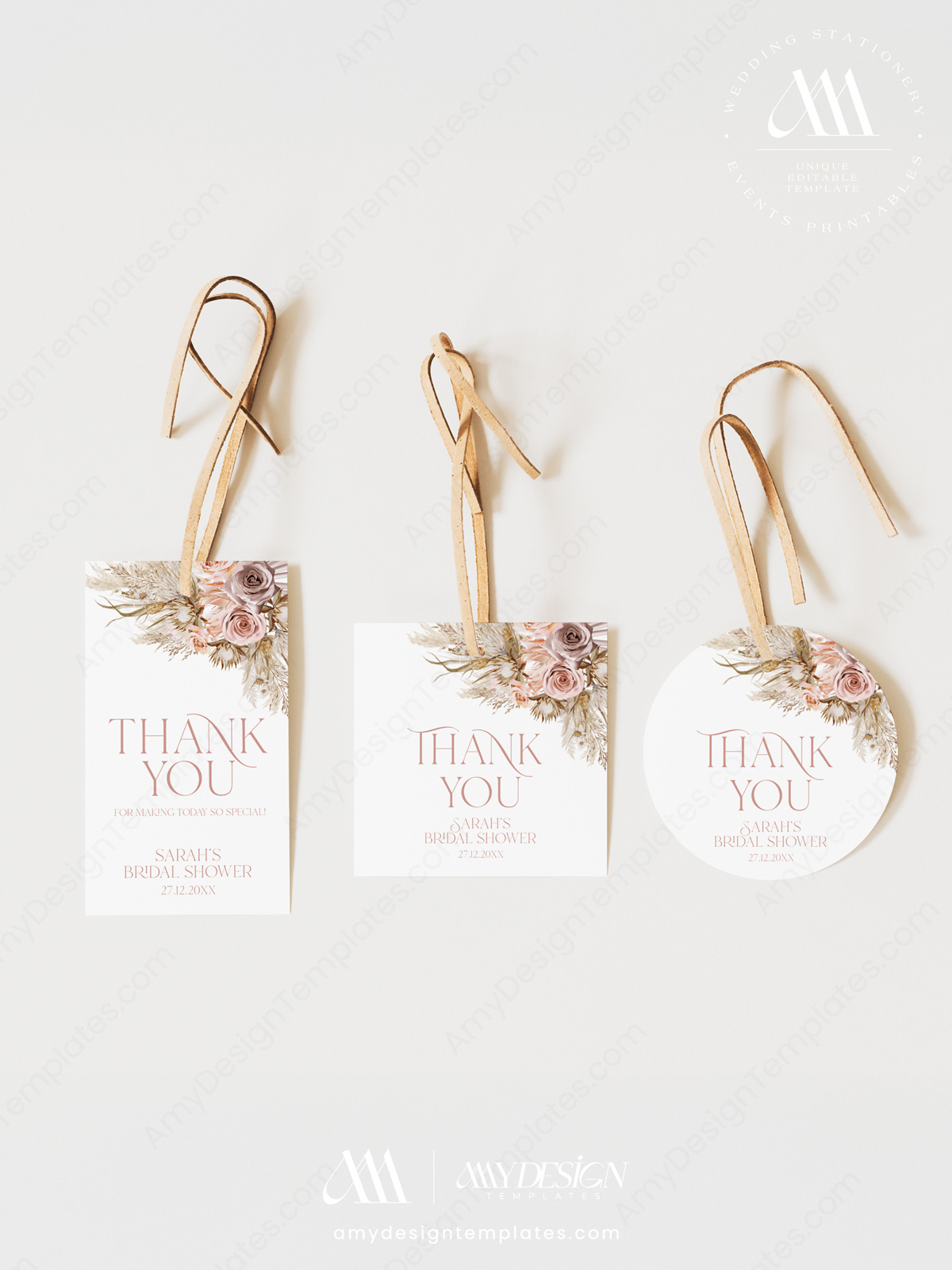 Add a perfectly personalized touch to your wedding, bridal shower, baby shower, or party favors with our editable tag templates. Designed for ease and flexibility, you can customize and print them instantly from any browser—no software needed!