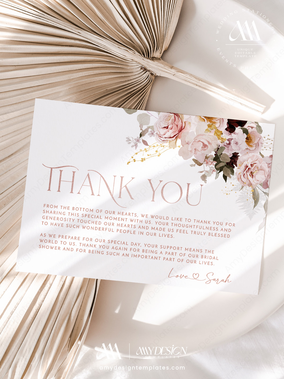 Say thank you in style with the Photo Thank You Wedding Cards Wildflower Template, where you can include your favorite wedding photo and edit all the text. Free demo included!