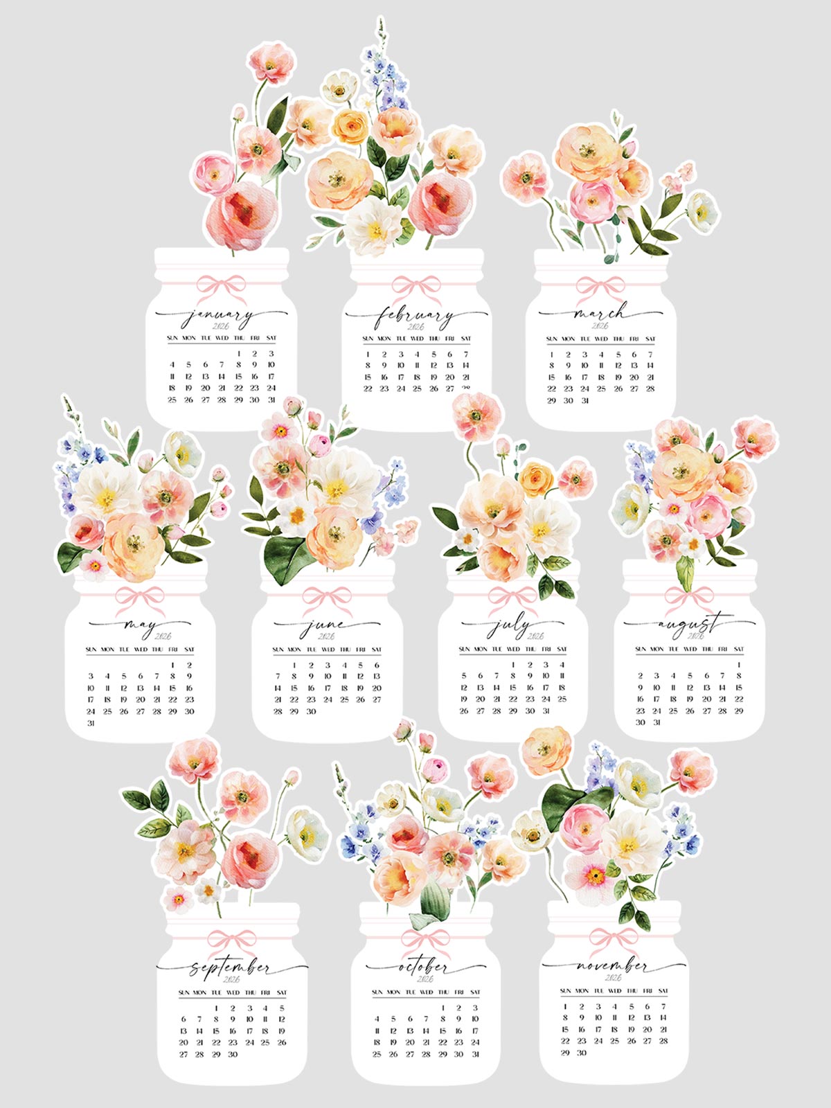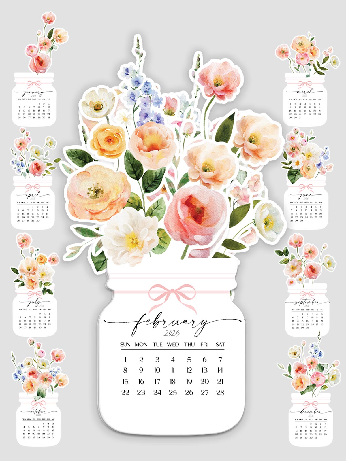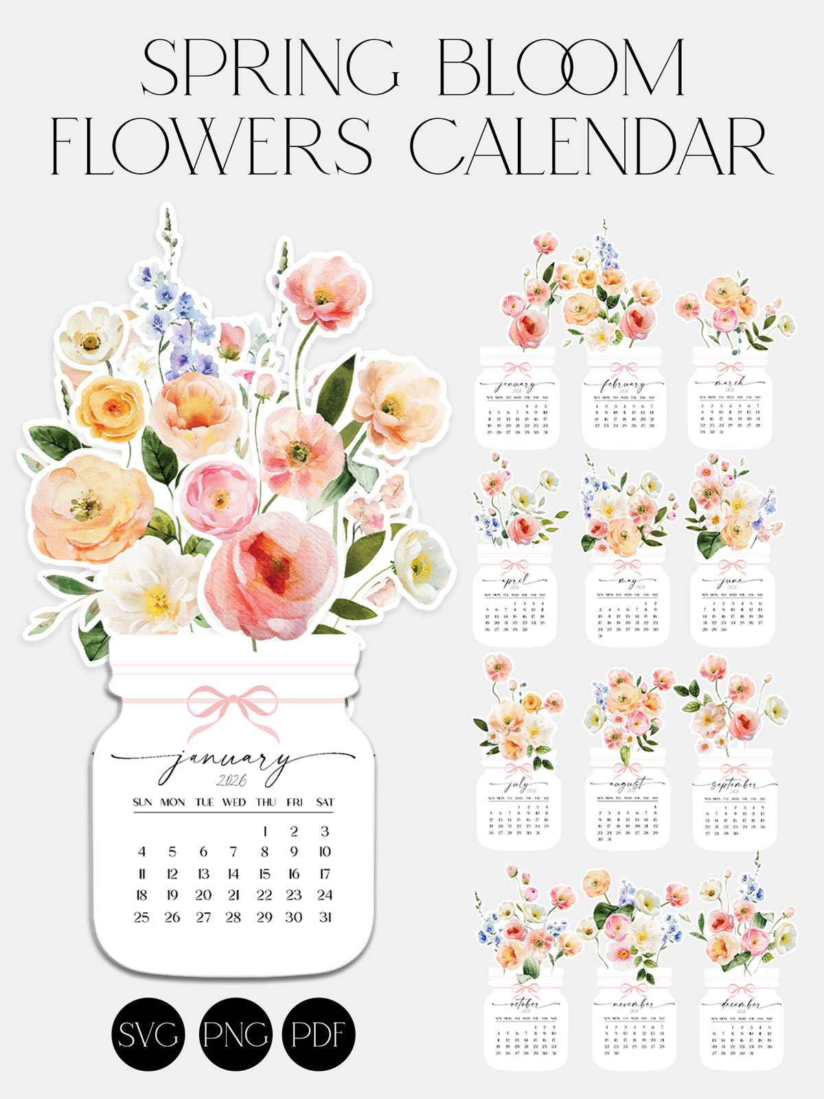 Download the stunning 2026 Printable Floral Desk Calendar! Watercolor spring bloom flower vase design in SVG, PNG, and PDF formats. Perfect digital gift.