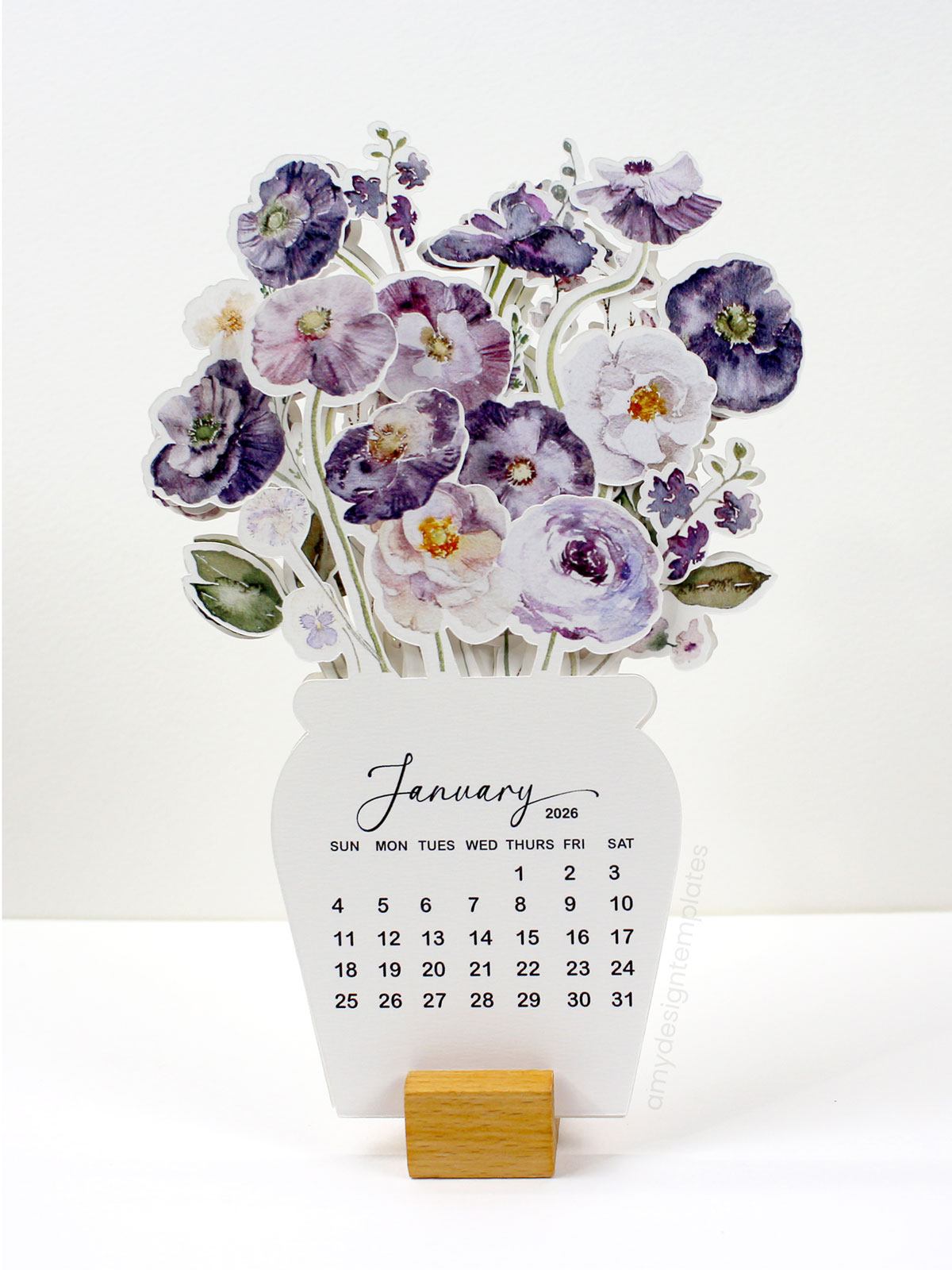 Printable Flowers Desk Calendar 2026 | Purple Floral Violet Poppy