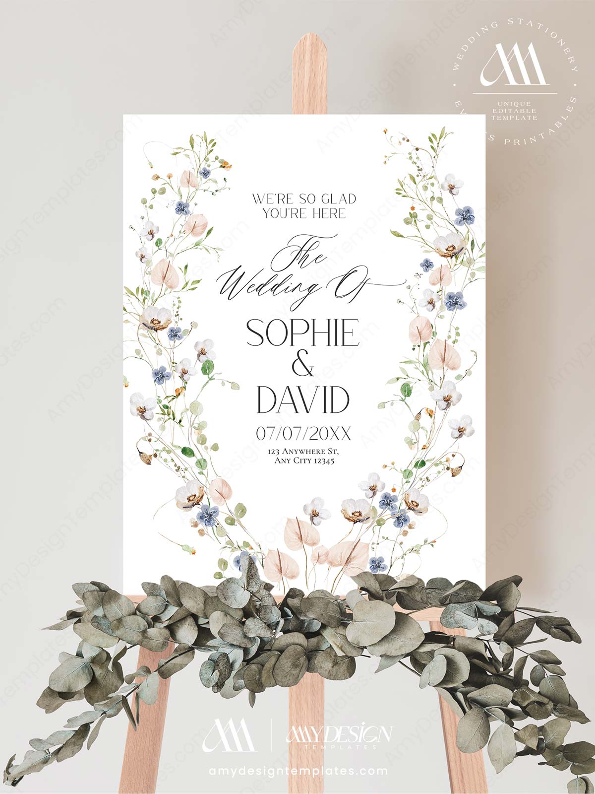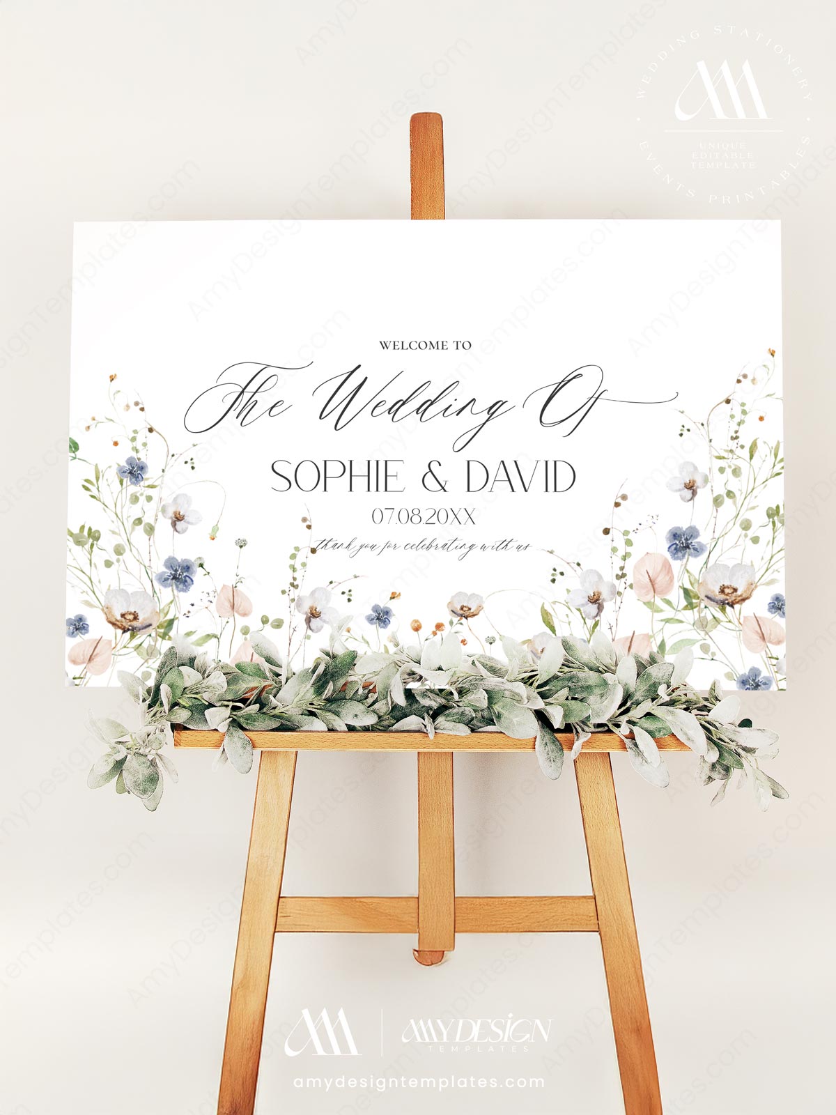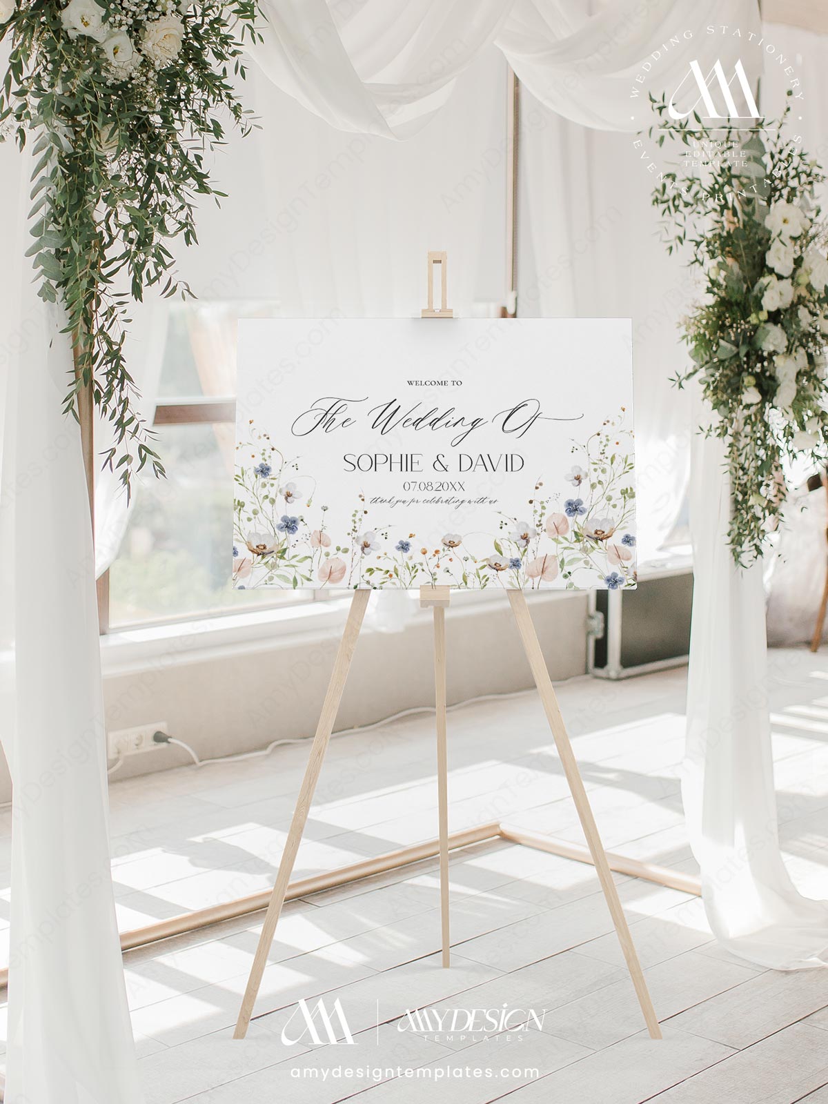 Printable Wedding Sign Template | Welcome To Our Wedding | Wildflower Welcome Sign Template Editable Printable