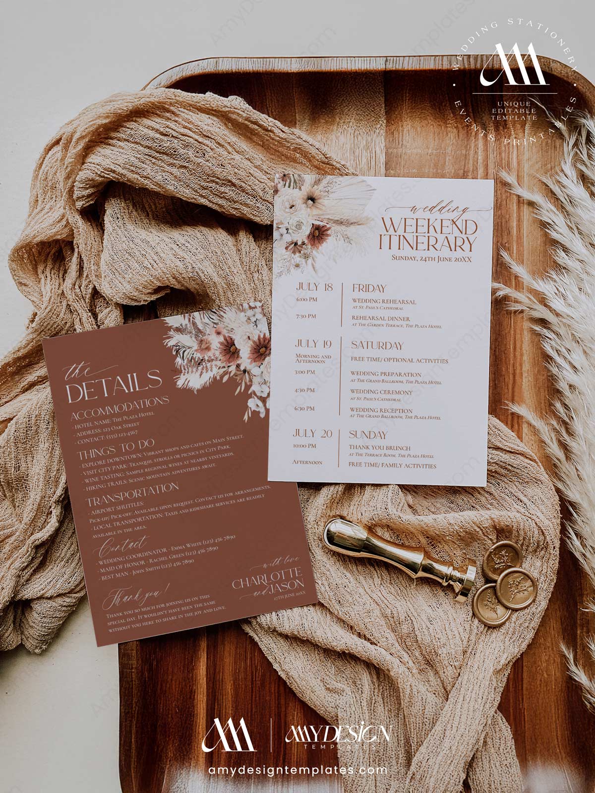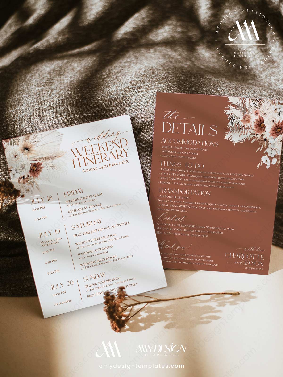 Printable Wedding Weekend Timeline Schedule | Weekend Itinerary Template | Boho Wedding
