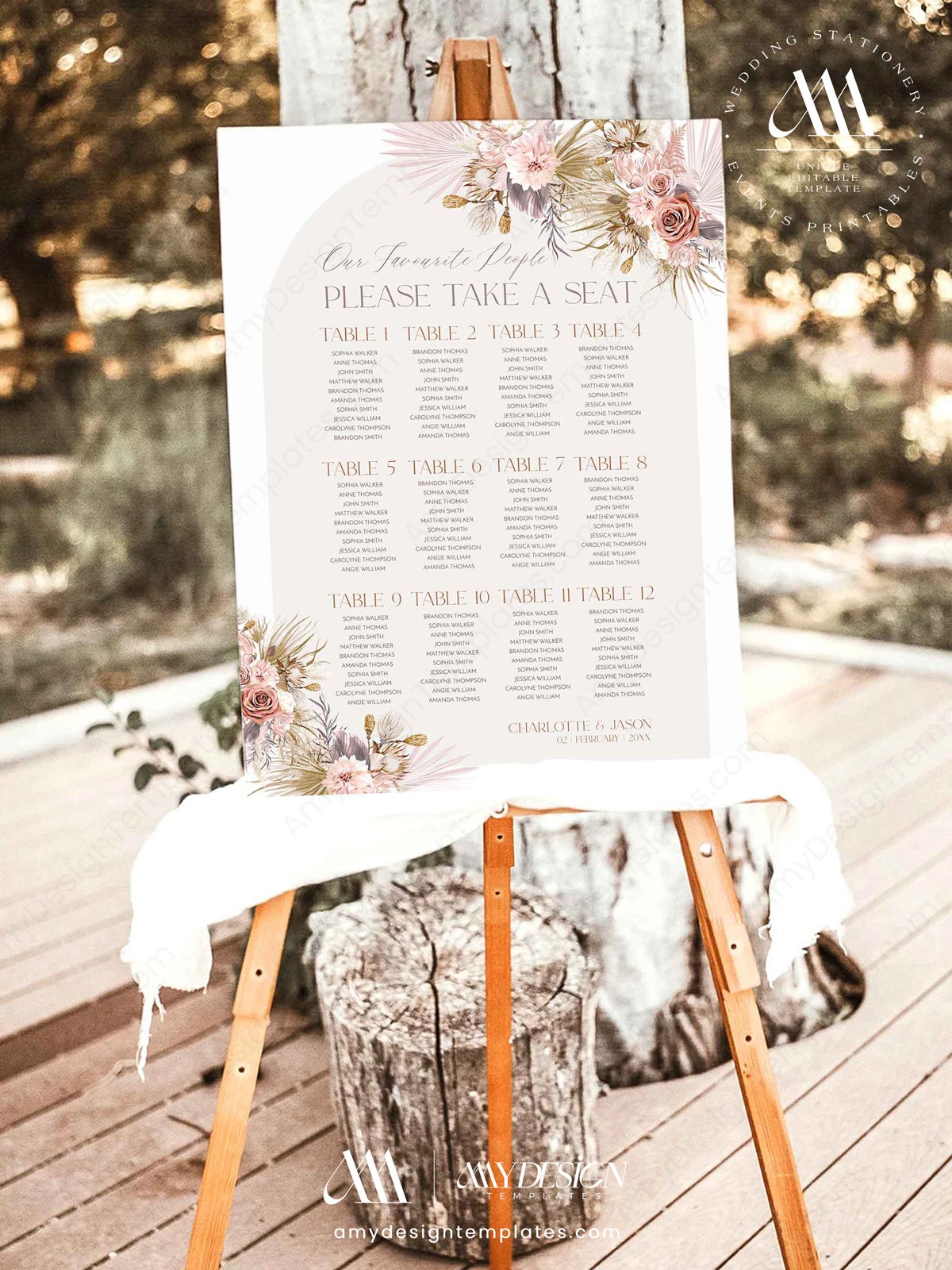 Table Seating Chart Template Editable | Pink Boho Wedding Seating Sign Printable