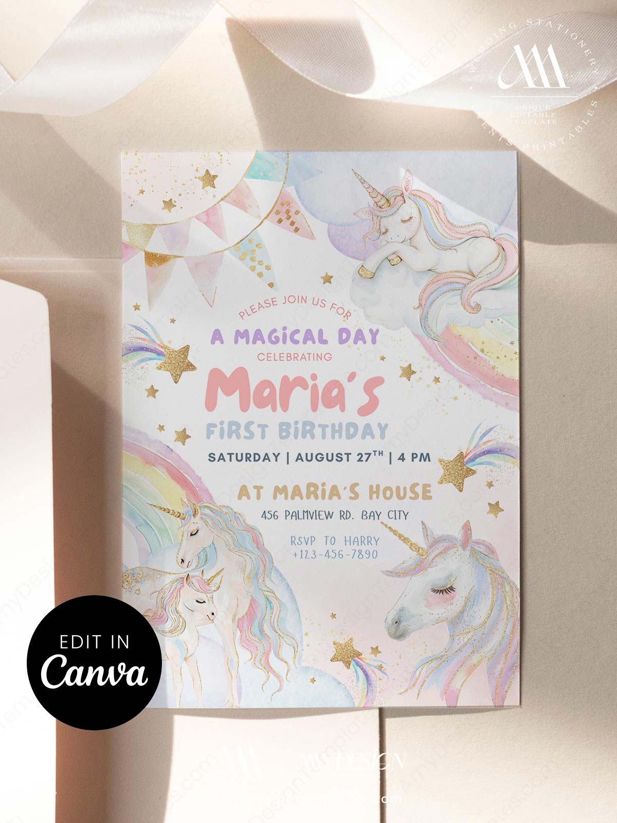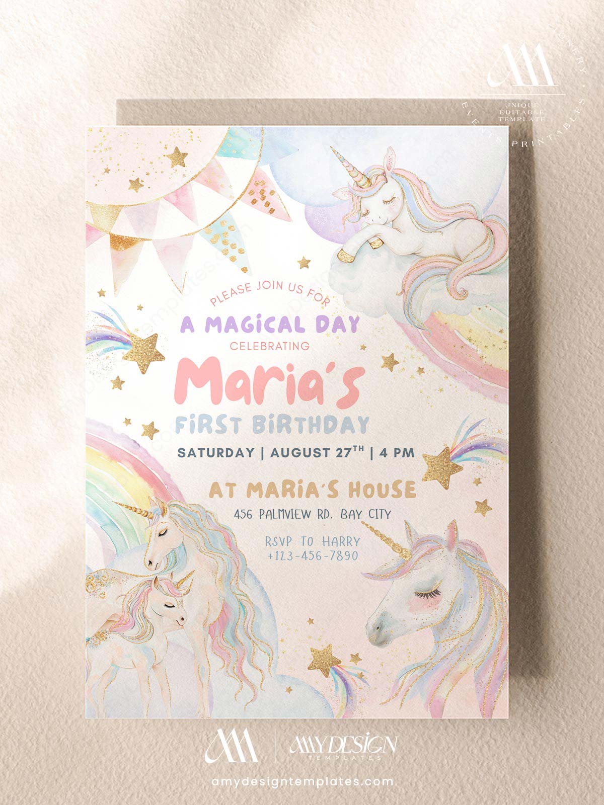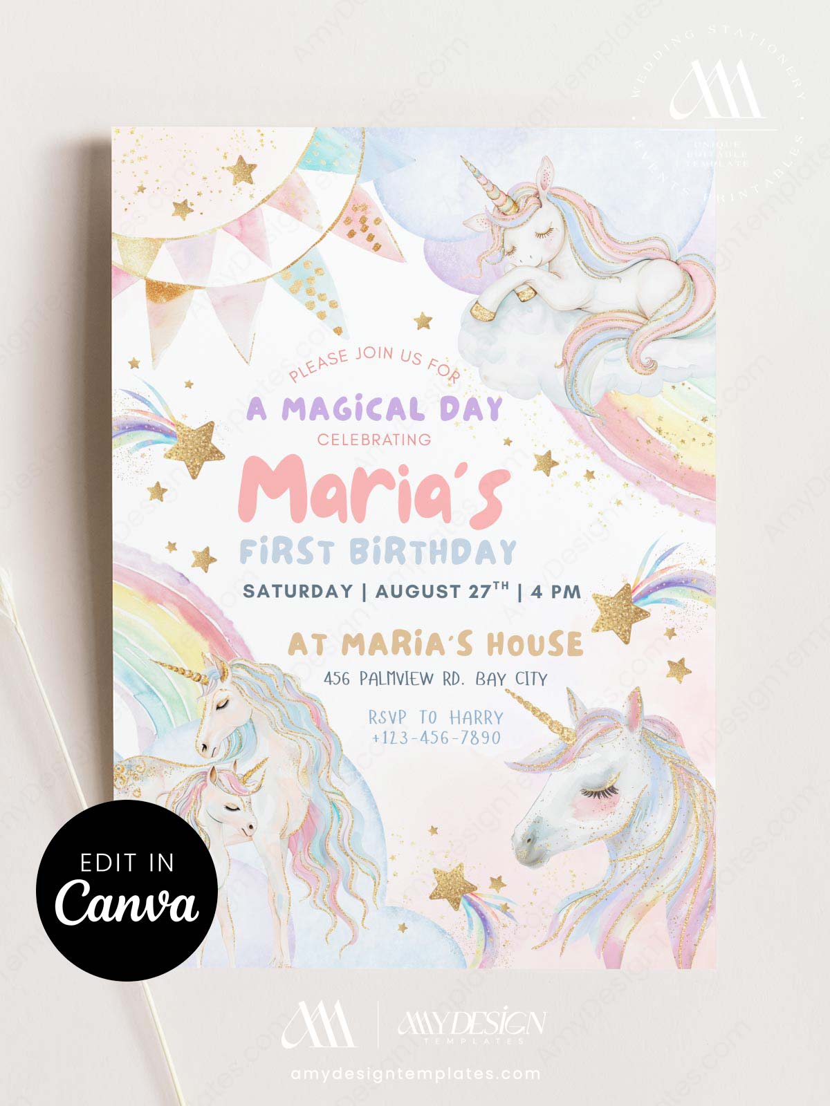 Unicorn Dreamland Birthday Invite Printable Template | Pastel Rainbow Girls Unicorn Party Invitation Canva