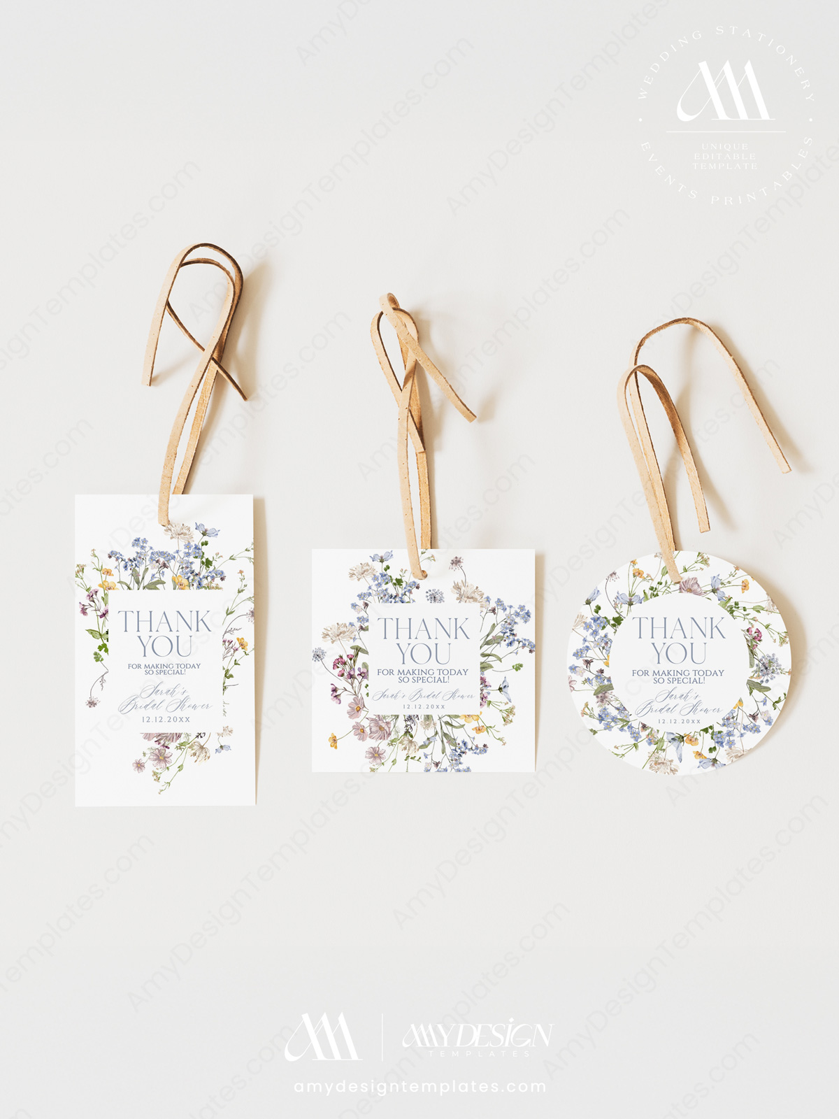 - Editable Favor Tag Templates (2″ x 3.5″ and 2″ x 2″).