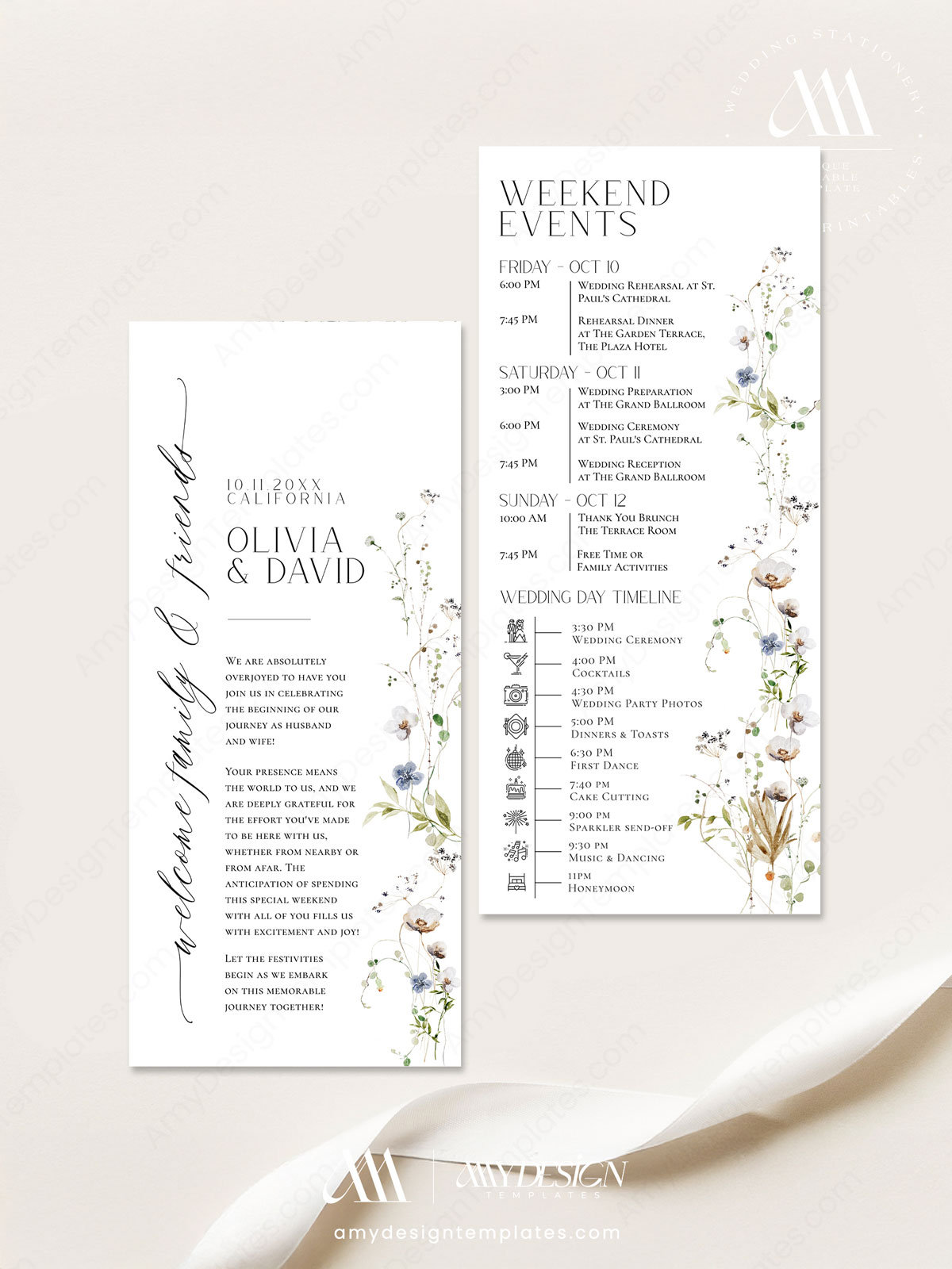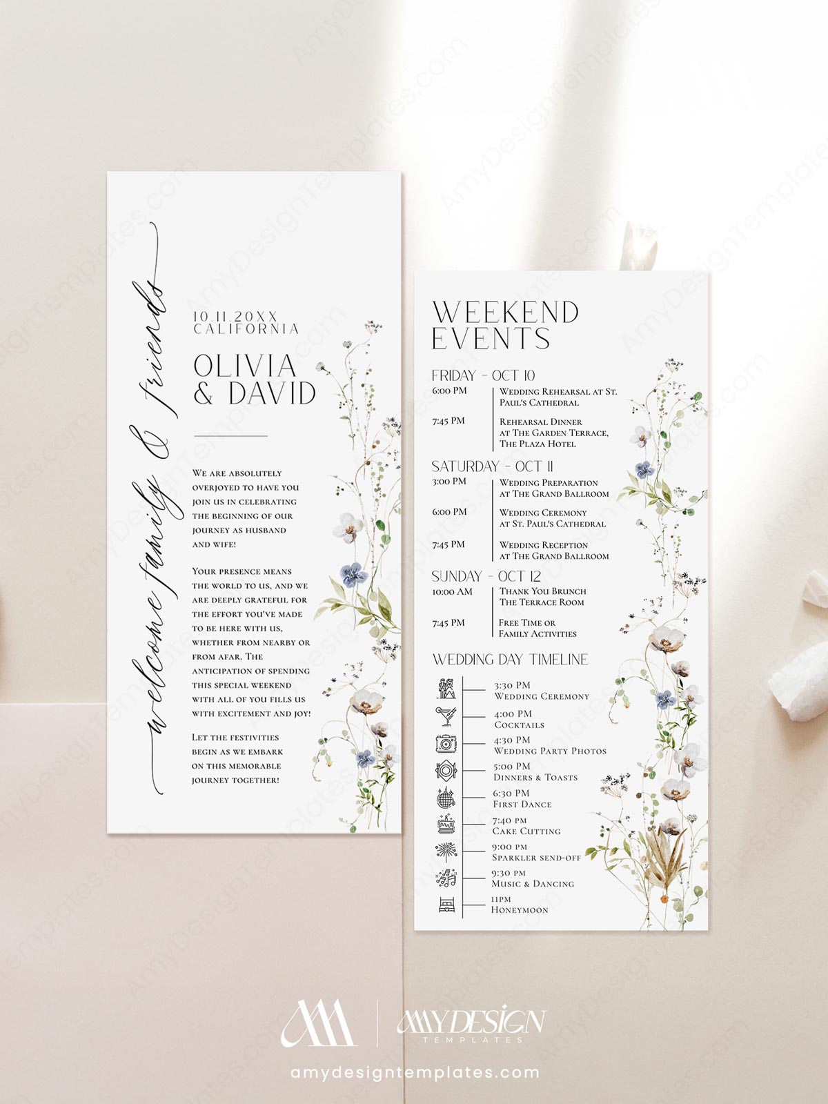 Wildflower Wedding Weekend Itinerary Template | Schedule Timeline Editable Printable