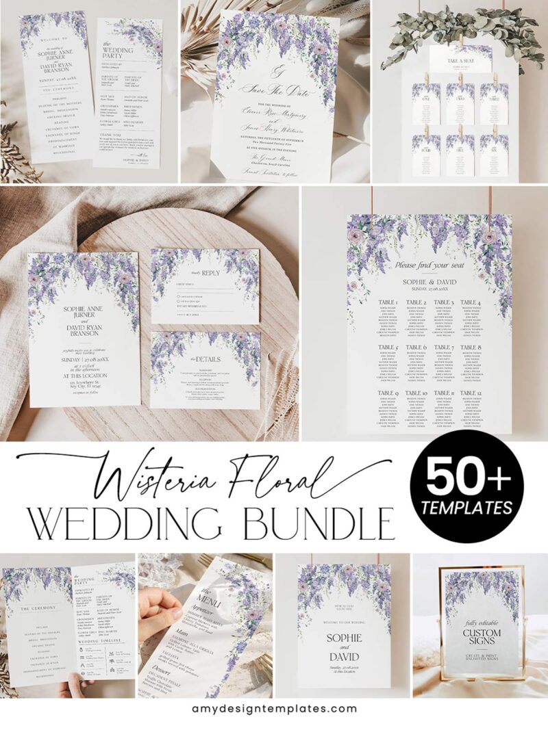 Wisteria Floral Wedding Invitations Template BUNDLE | 50+ Templates Wedding Stationery Kit